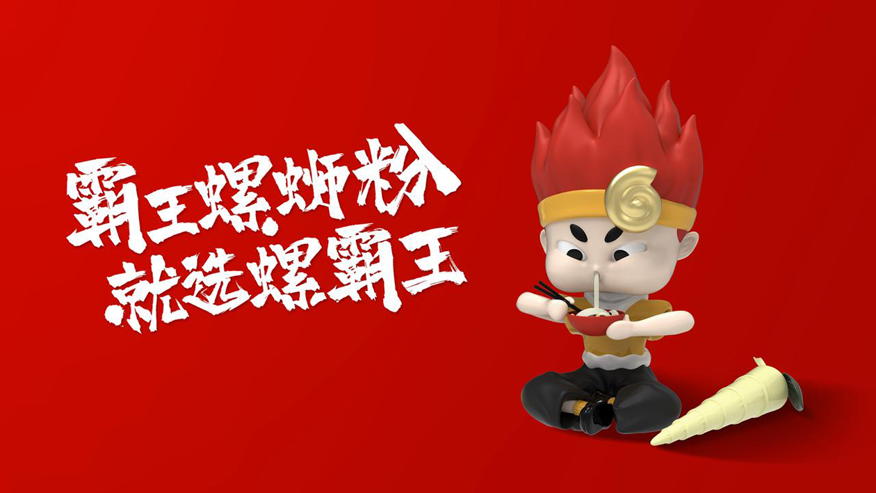 通過尋找消費者心智中的“霸王”文化印記,將螺螄粉的核心材料“螺”融入到人物特征設(shè)計中,構(gòu)建一個年輕人認同的率真、勇敢、張揚的IP形象,彰顯霸王氣質(zhì)。