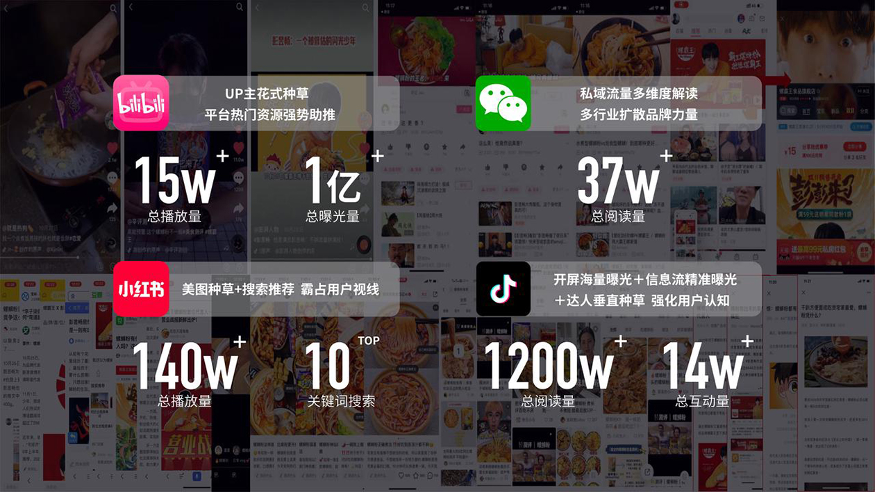 通過整合營銷,利用明星代言官宣事件,戰(zhàn)略性提高品牌認知度,強化螺獅粉“霸王地位”的品牌心智認知,助力螺霸王成為更具競爭力的強勢品牌。